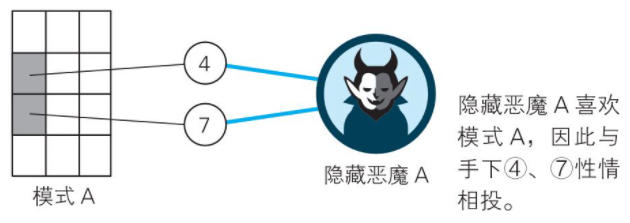 然后,隐藏层5和8所对应的特征被提取,“模式B”点火;
